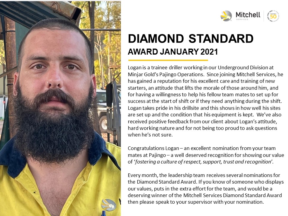 We’re happy to announce our January Diamond Standard Award winner, Logan Miller!