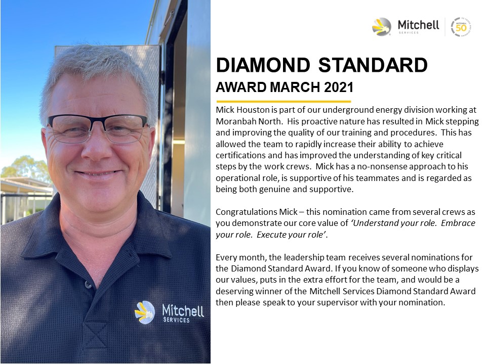 We’re thrilled to announce our March Diamond Standard Award winner, Mick Houston.
